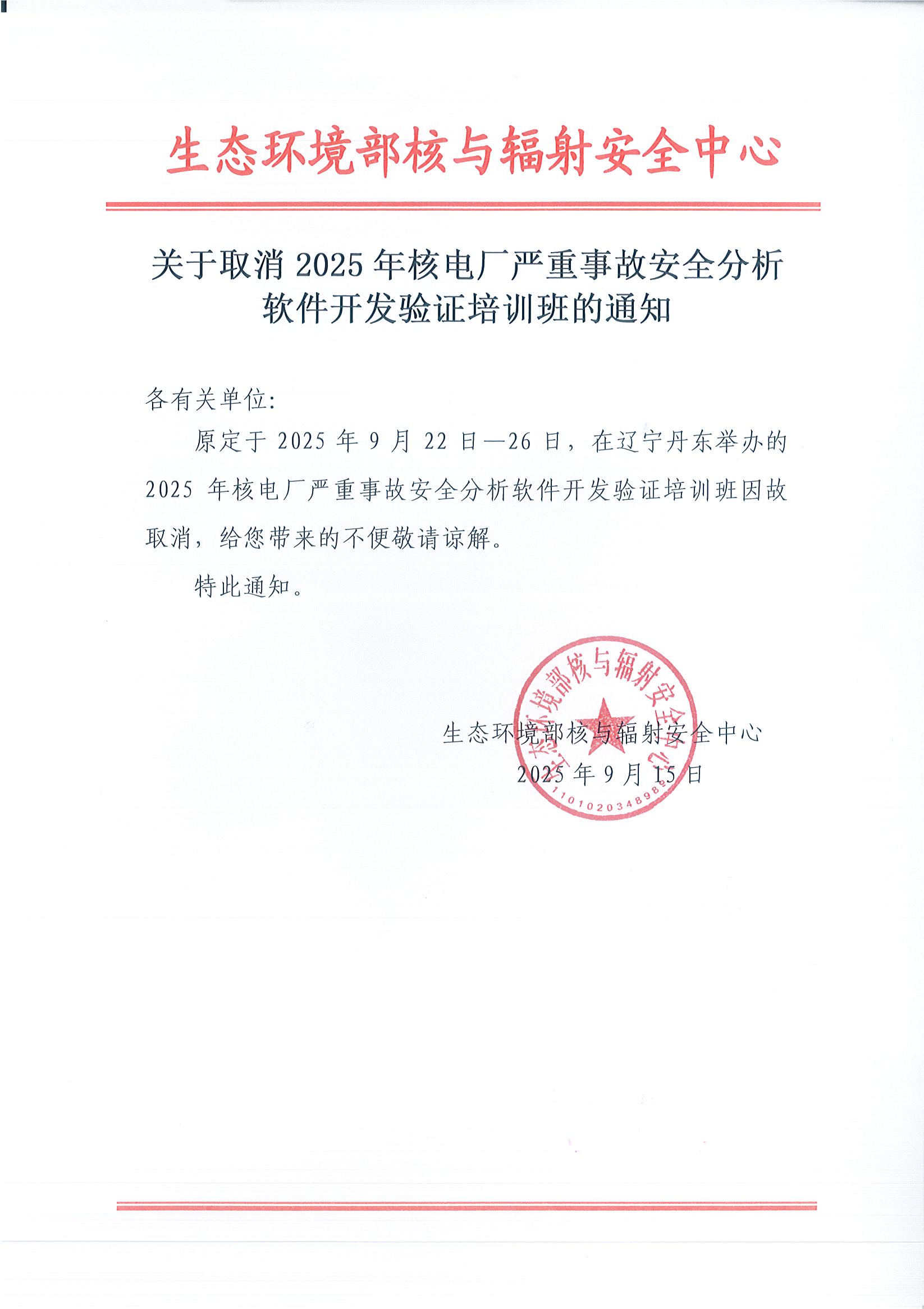 关于取消2025年核电厂严重事故安全分析软件开发验证培训班的通知